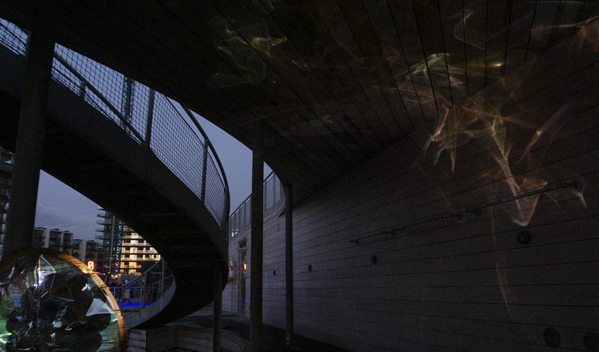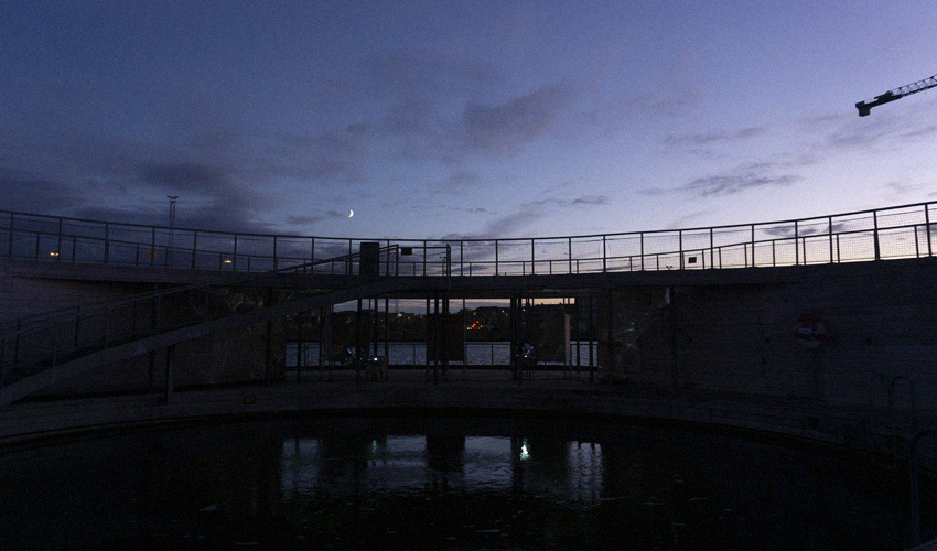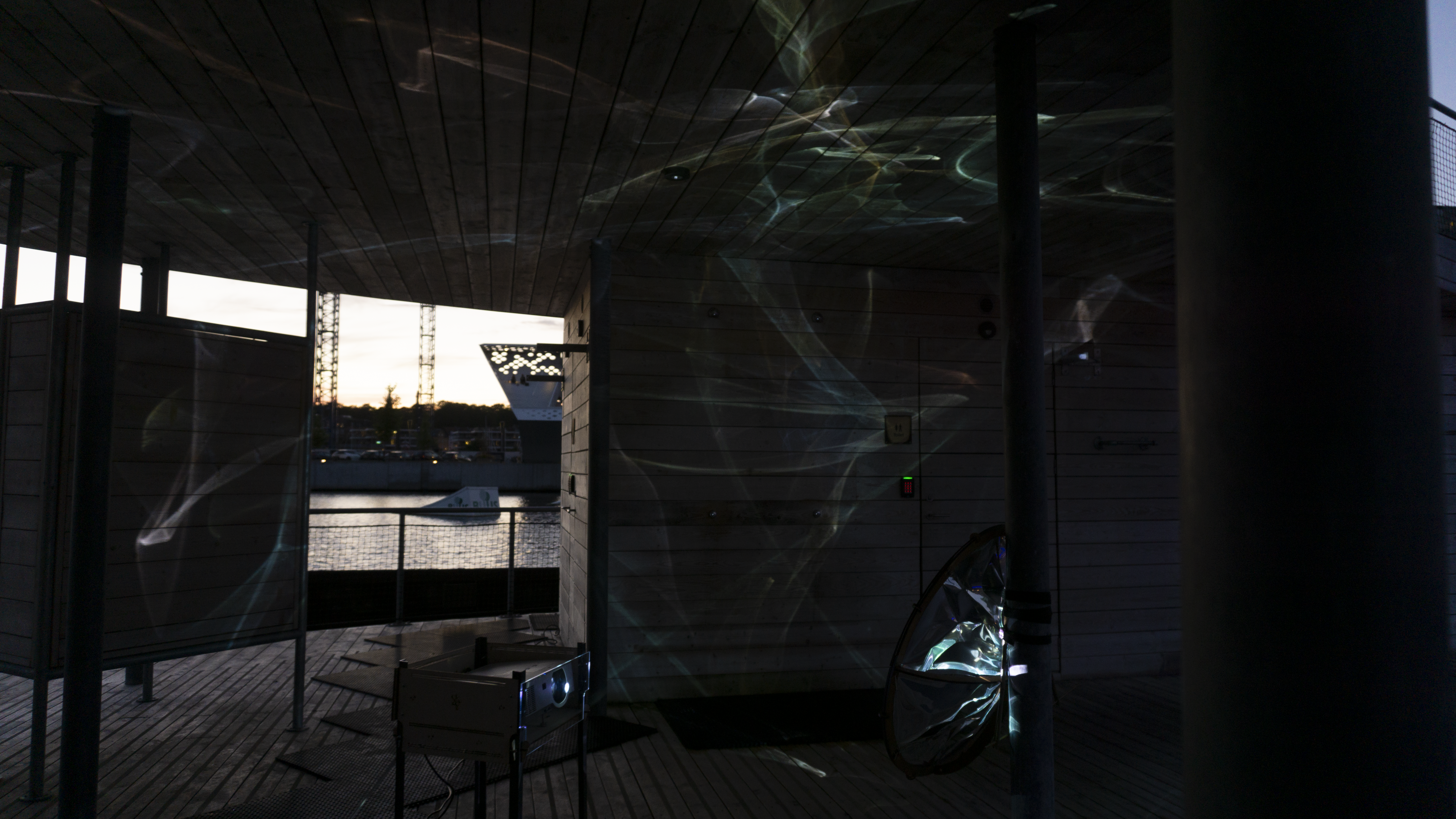 Tusmørke (Aura no. III) is a light installation that combines artificial and natural light at the transition from light to darkness. Through a timespecific composition that is adjusted to the exact moments of the transisitons from civil, nautic and austronomial twilight a the respective date the light compostition complements and infiltrate this change from day to night. With a starting point of the exact time of the sunset, a twilight composition explores the relationship between light and darkness, natural and artificial light in the ‘light-specific’ context of The Habour Bath, Bassin 7 in Aarhus Habour.